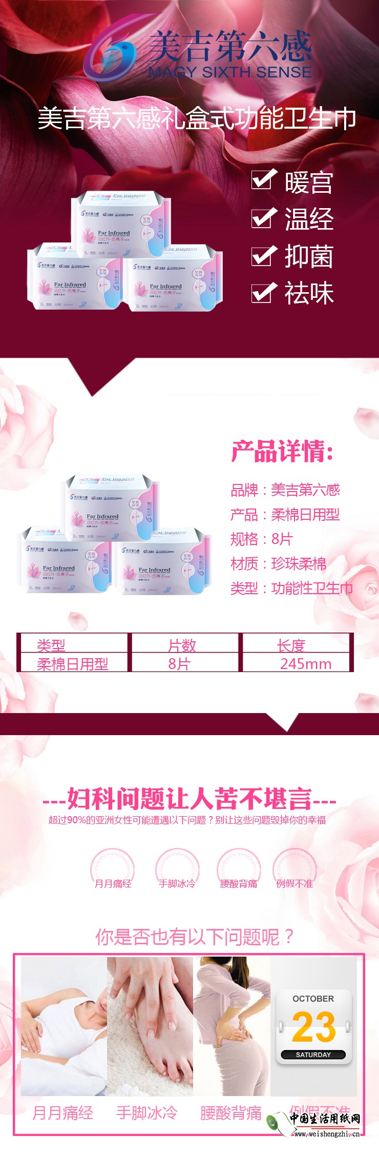 【暖宮·溫經(jīng)·抑菌·祛味】 ——美吉第6感衛(wèi)生巾全國招商