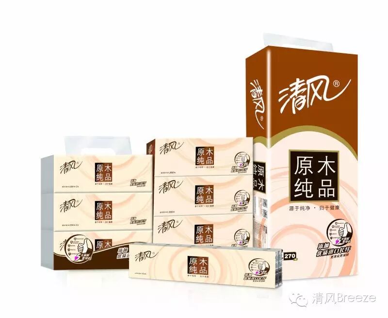 清風(fēng)針對不同需求的生活用紙消費者開發(fā)針對不同功能的商品,其中包含原木金裝、原木純品、新韌時代和寶倍親柔系列等。