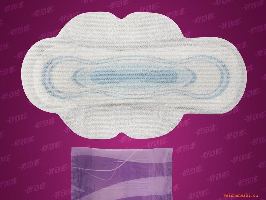 專供出口帶藍芯絲綢網(wǎng)面284mm硅油膜衛(wèi)生巾
