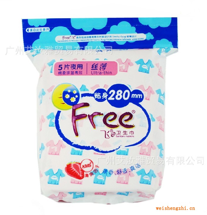 正品FREE.飛衛(wèi)生巾 柔棉排濕網(wǎng)面夜用絲薄衛(wèi)生巾5片裝