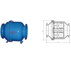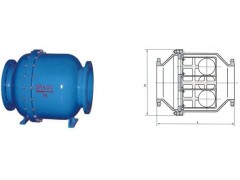 球形止回閥,采用橡膠包球?yàn)殚y瓣,在介質(zhì)的作用下,可字啊閥體內(nèi)地滑道上滾動(dòng),從而打開或關(guān)閉閥門。具有流量大,流阻損失小,密封性能好,消聲關(guān)閉,能減小水擊波。水平或垂直安裝均可??砂惭b與冷水、熱水、工業(yè)及生活污水等官網(wǎng)的水泵出口,防止介質(zhì)倒流。此閥零件少,拆卸方便。球體的膠層有很好的彈性和耐磨性,故具有減振、吸振,易于密封,工作安全可靠。本公司生產(chǎn)的球形止回閥型號(hào)有:HQ44X\HQ45X.